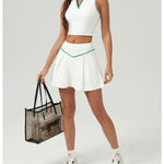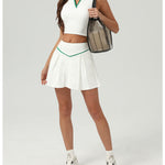A sleek polo-inspired crop top paired with a pleated skort for a sophisticated, sporty silhouette.