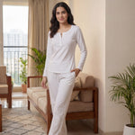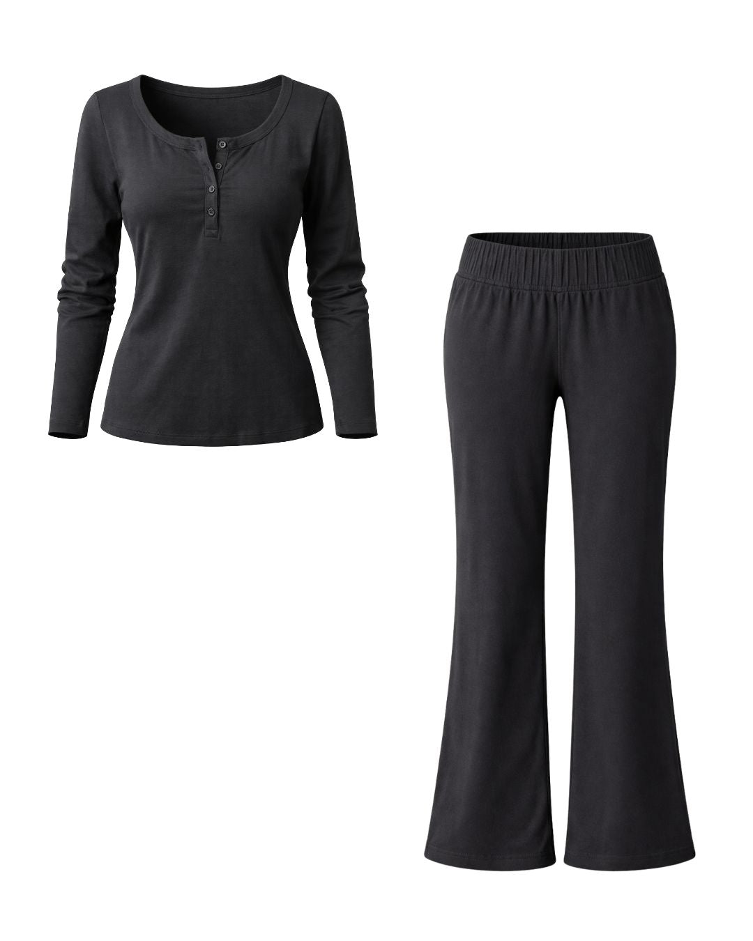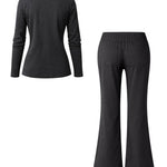 The Midnight Flow Flare Co-Ord Set is your everyday elevated essential. Designed with a body-skimming long-sleeve top and high-waisted flared pants, this set flatters your natural shape while delivering unmatched comfort.