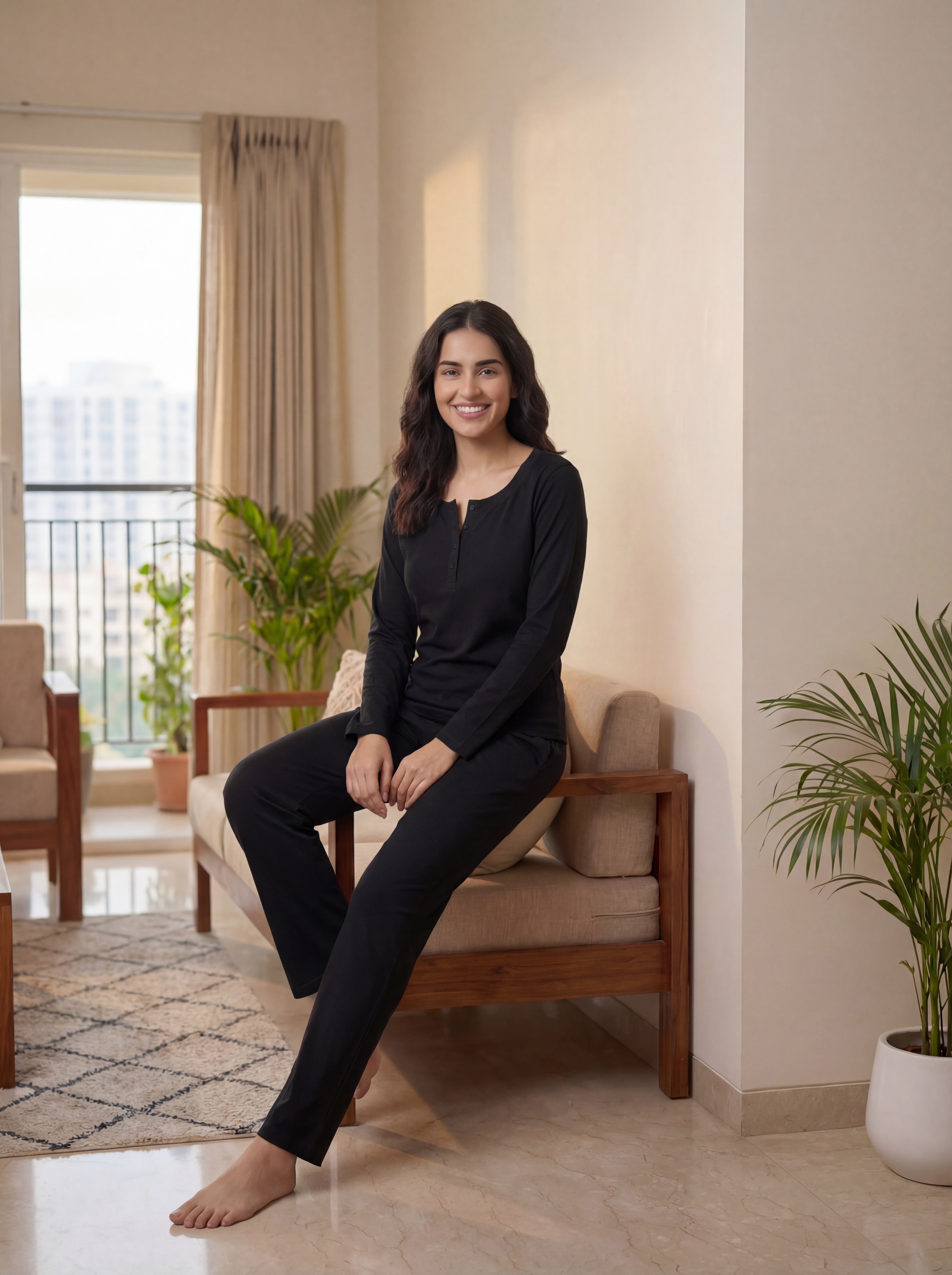 Glide through your day in our Black Coord Set. This versatile athleisure outfit is perfect for leisure or travel, offering both comfort and chic style. Embrace ease and elegance, wherever your journey takes you.
