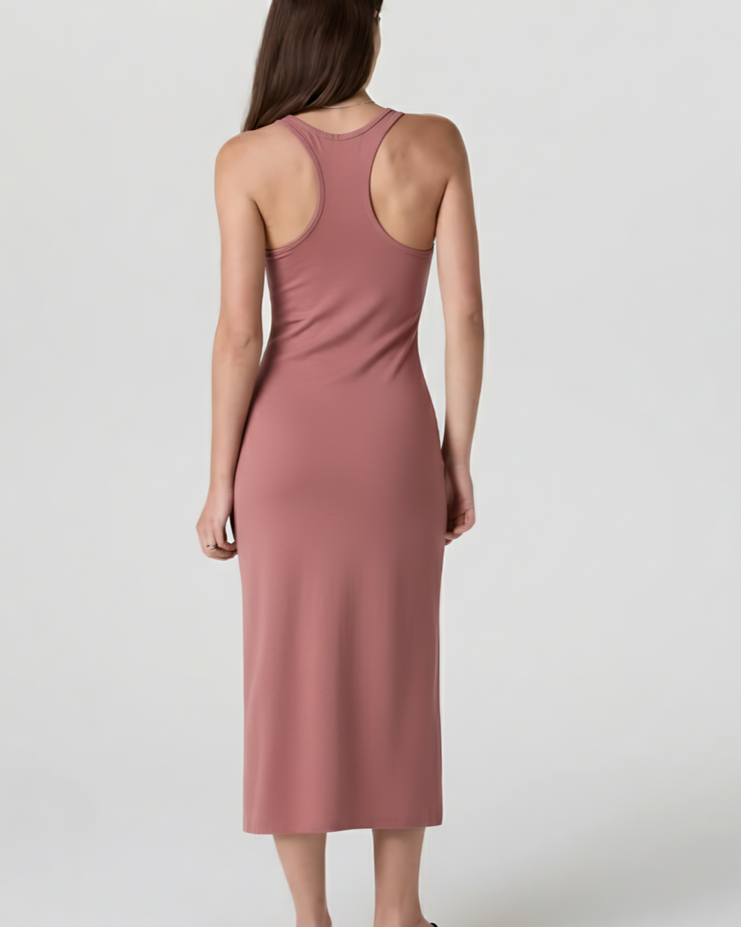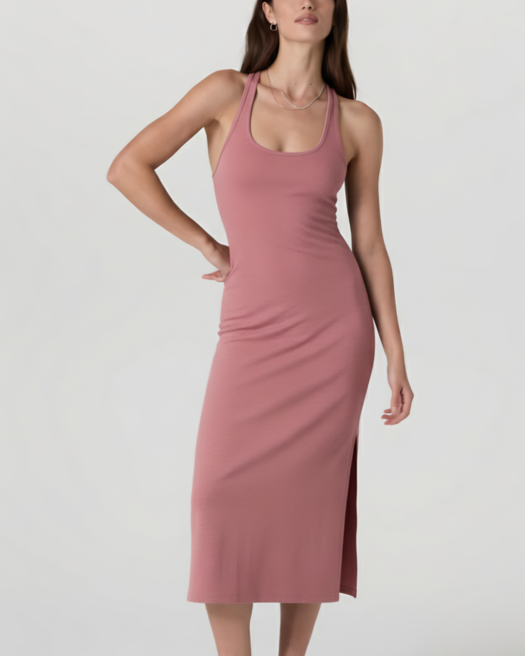 The Halo Racerback Dress is all about lasting comfort and effortless style. Designed with our oh-so-soft Cotton Lycra made from recycled materials, this midi dress has a racerback, curved V-neck.