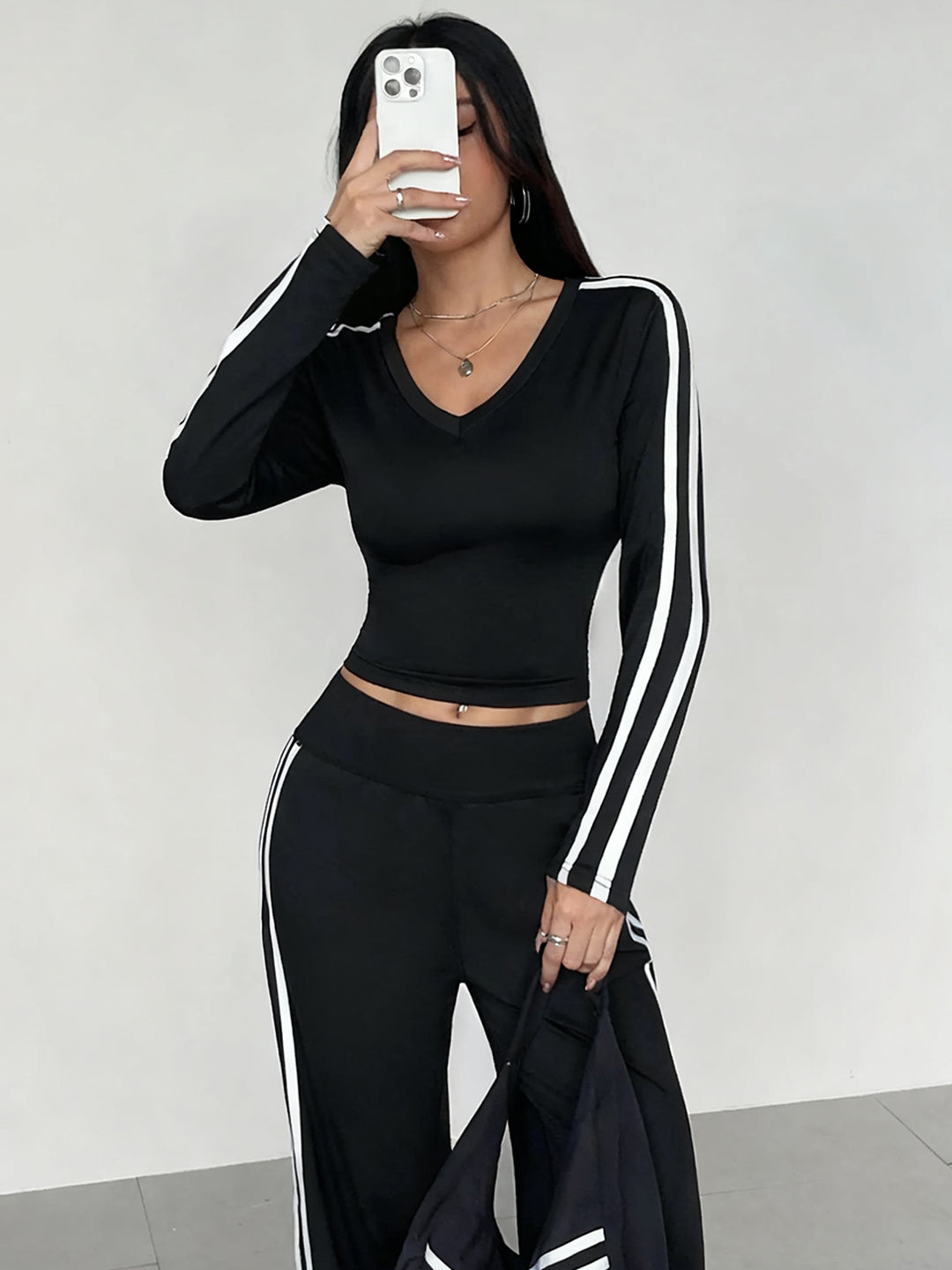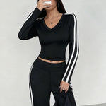 The FlexLine Active V-Neck combines a sculpting fit with athletic stripe detailing for a clean, sporty look. Made from soft, breathable, 4-way stretch fabric, it offers smooth comfort, easy movement, and all-day wearability—perfect for training or everyday athleisure.