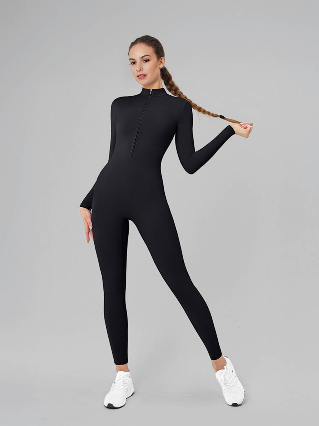 Level up your athleisure game with the FlexiFit ZipSuit – a sleek, second-skin full bodysuit that’s all about power, confidence, and movement. The high-neck half-zip detail gives you that edgy vibe while making it easy to slip on and off. Designed to contour and sculpt, it’s a one-piece wonder that transitions from gym mode to street-style chic in seconds.
