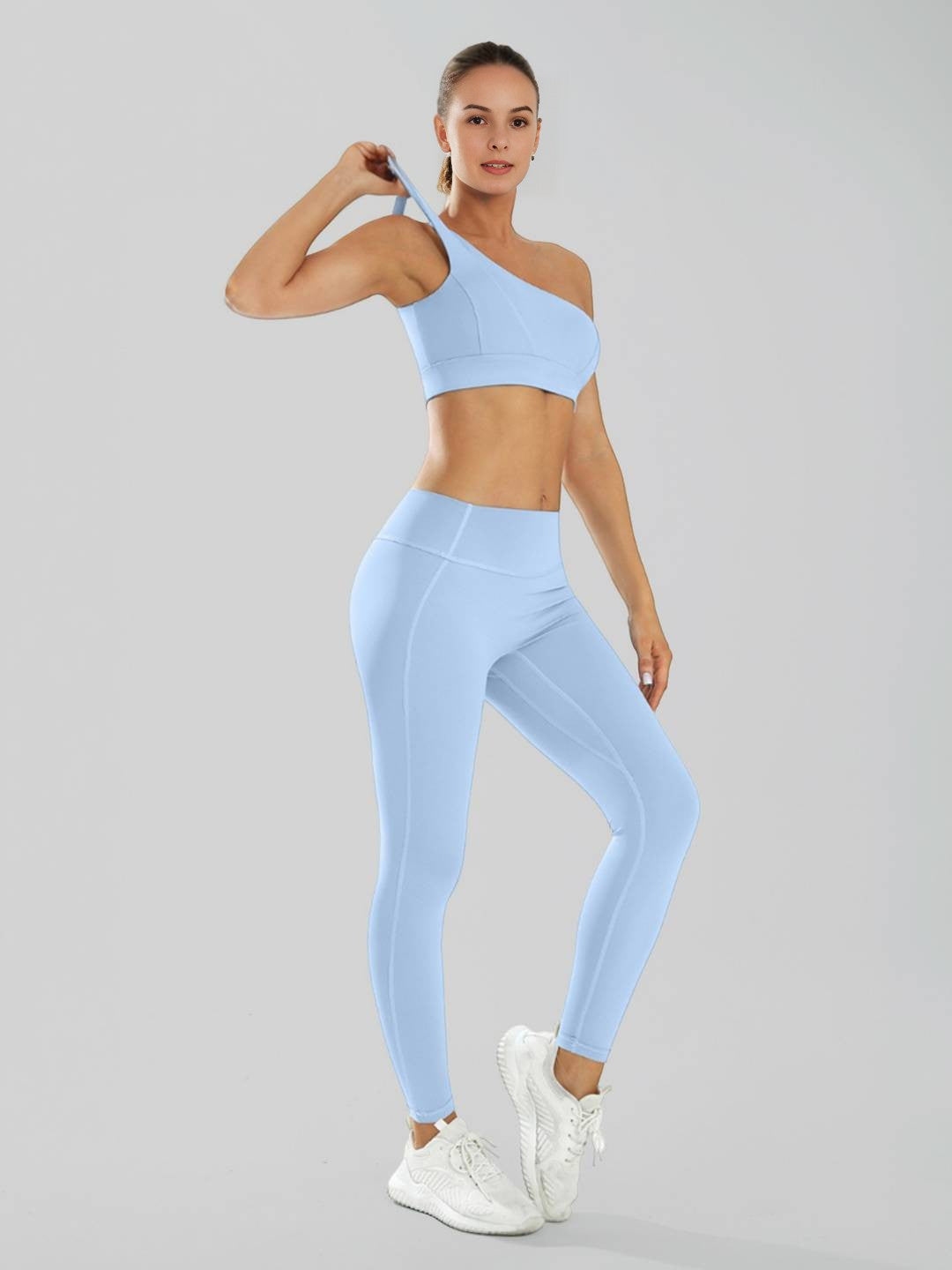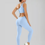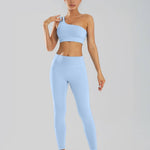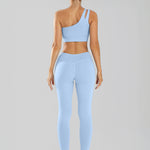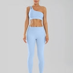 Turn heads at the gym or the café in the Skyline Asym Set – a bold, one-shoulder asymmetric sports bra paired with sculpting high-waist leggings. Designed for the Gen Z girl who loves a mix of edgy and minimal, this set brings a fashion-first approach to activewear without compromising comfort.