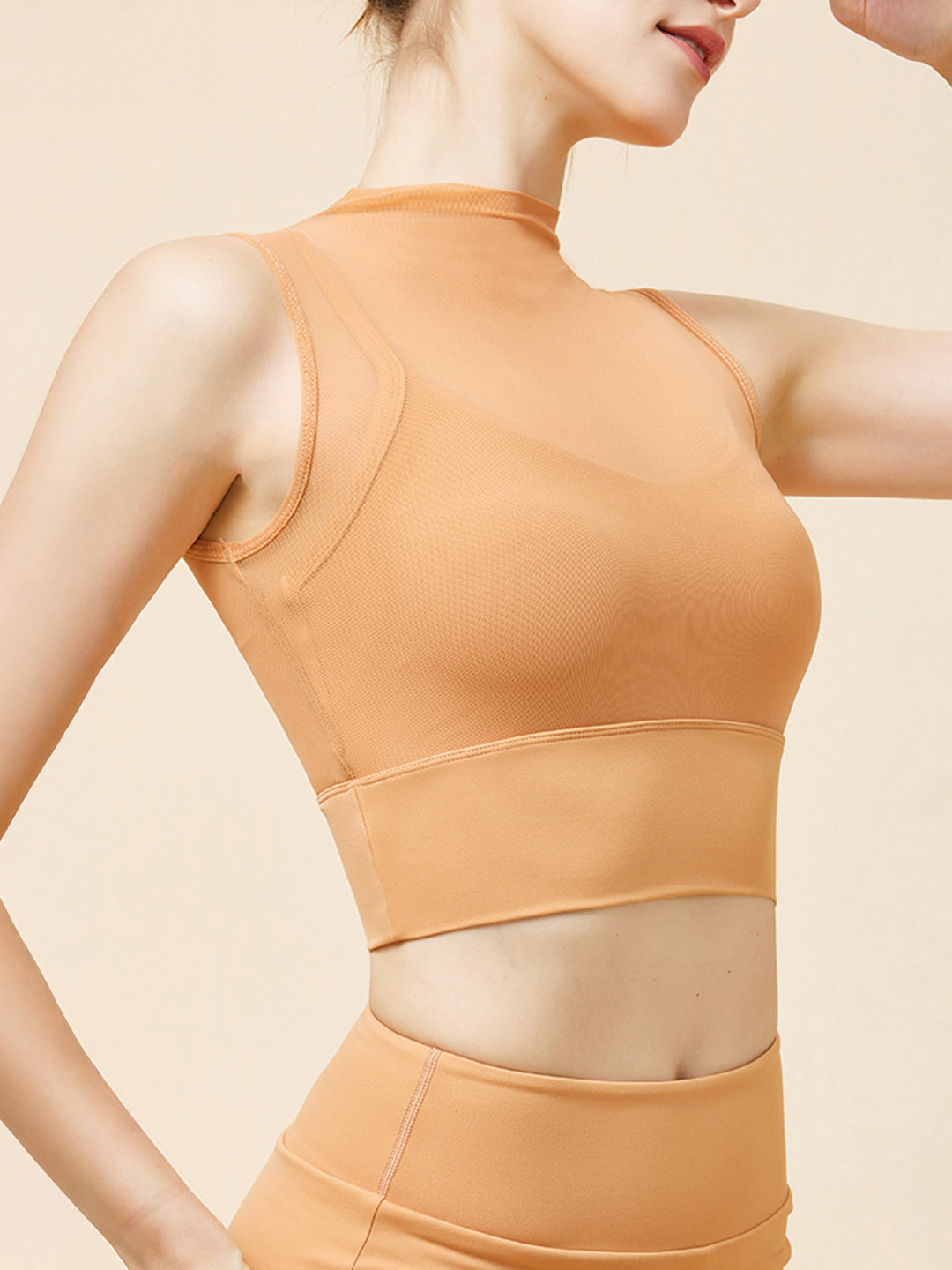 MeshFlex High Neck Crop Top – Orange