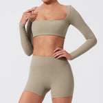 CurveSculpt Square-Neck Full Sleeves Padded Crop Top