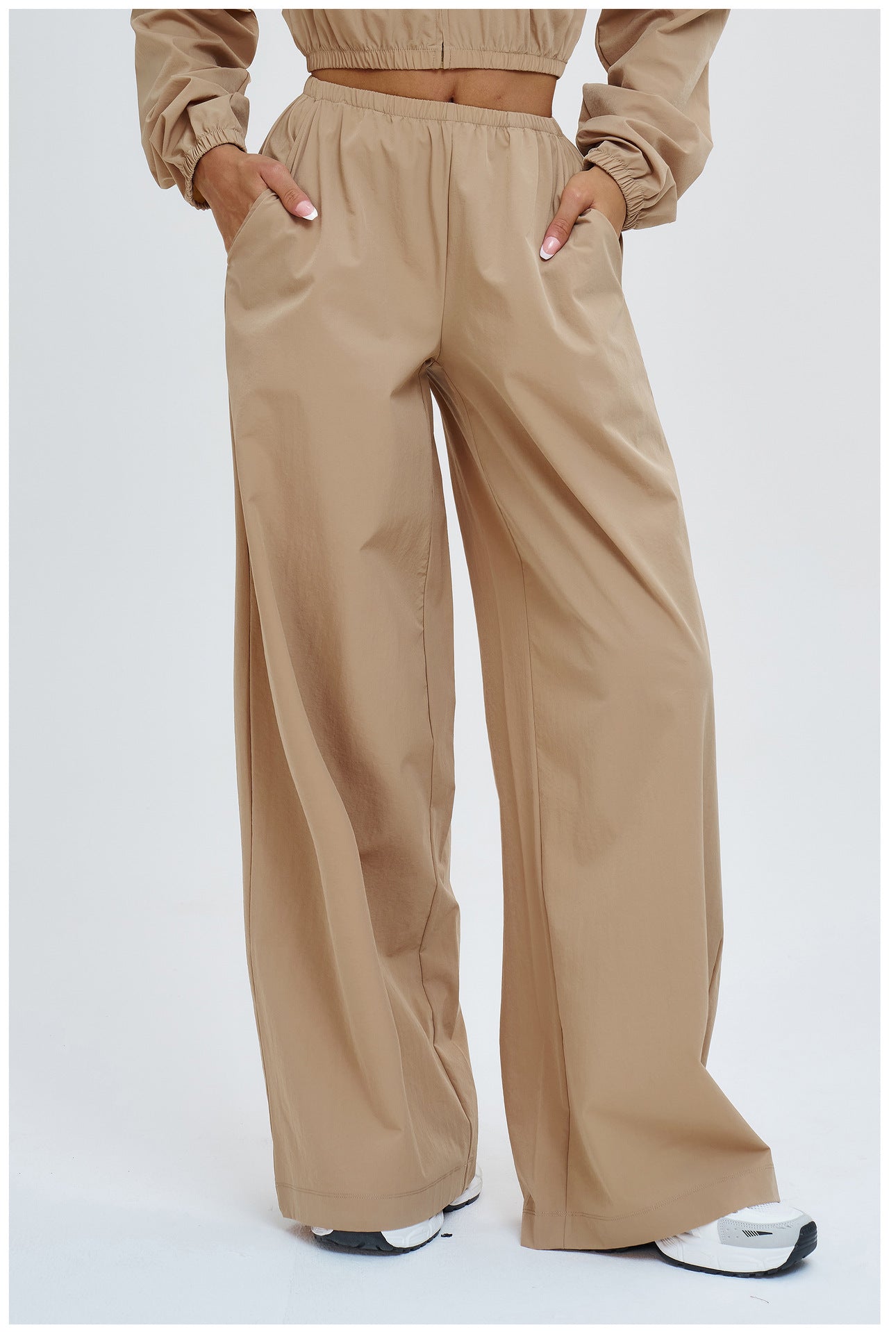 Crafted from lightweight, breathable fabric, they offer all-day ease while the elastic waistband ensures a secure yet relaxed fit. The fluid drape and relaxed cut make them perfect for workouts, travel days, and everyday street styling.