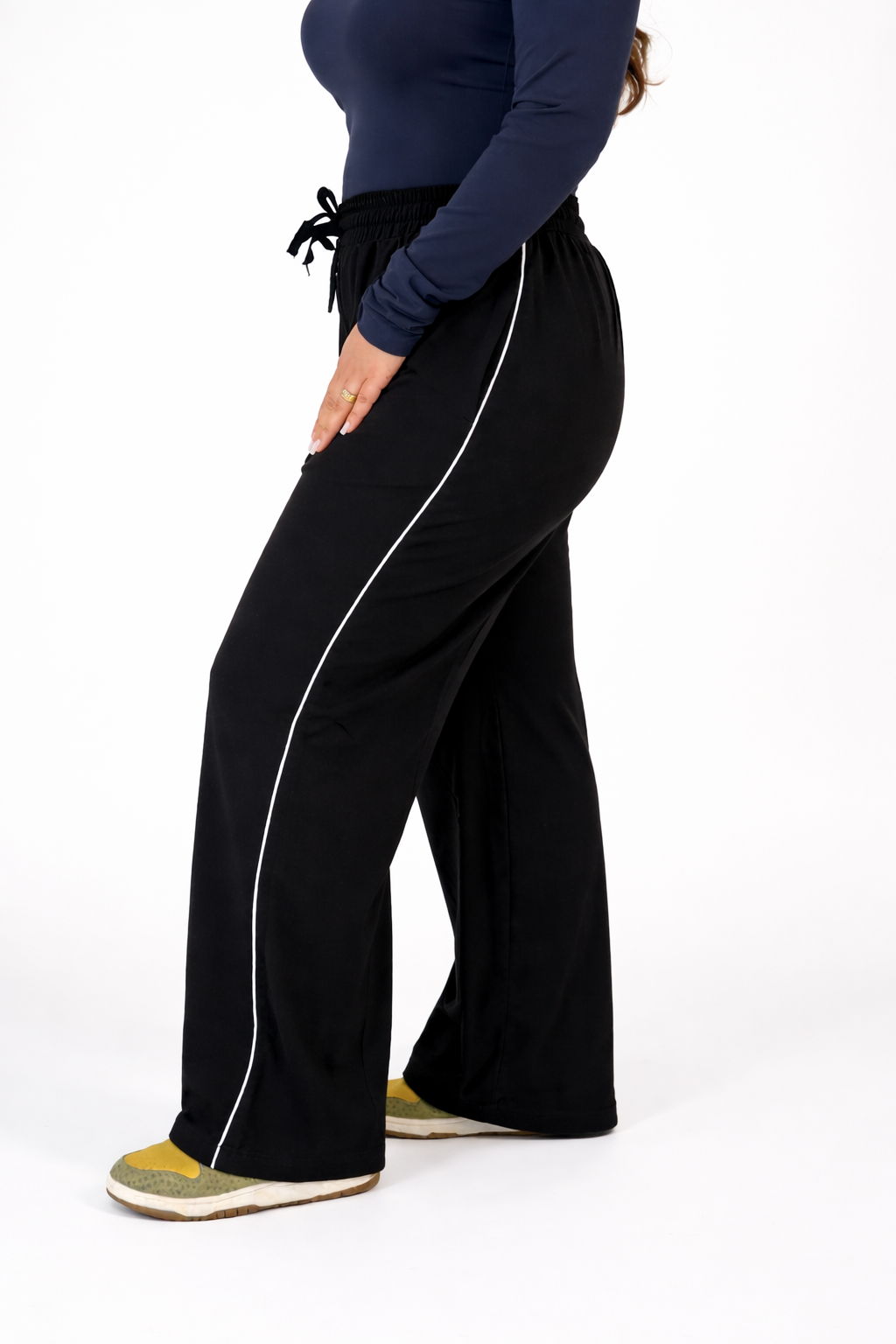 These wide-leg joggers are designed for movement, lounging, and everything in between—crafted in a soft, breathable fabric that drapes beautifully without losing structure.
