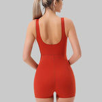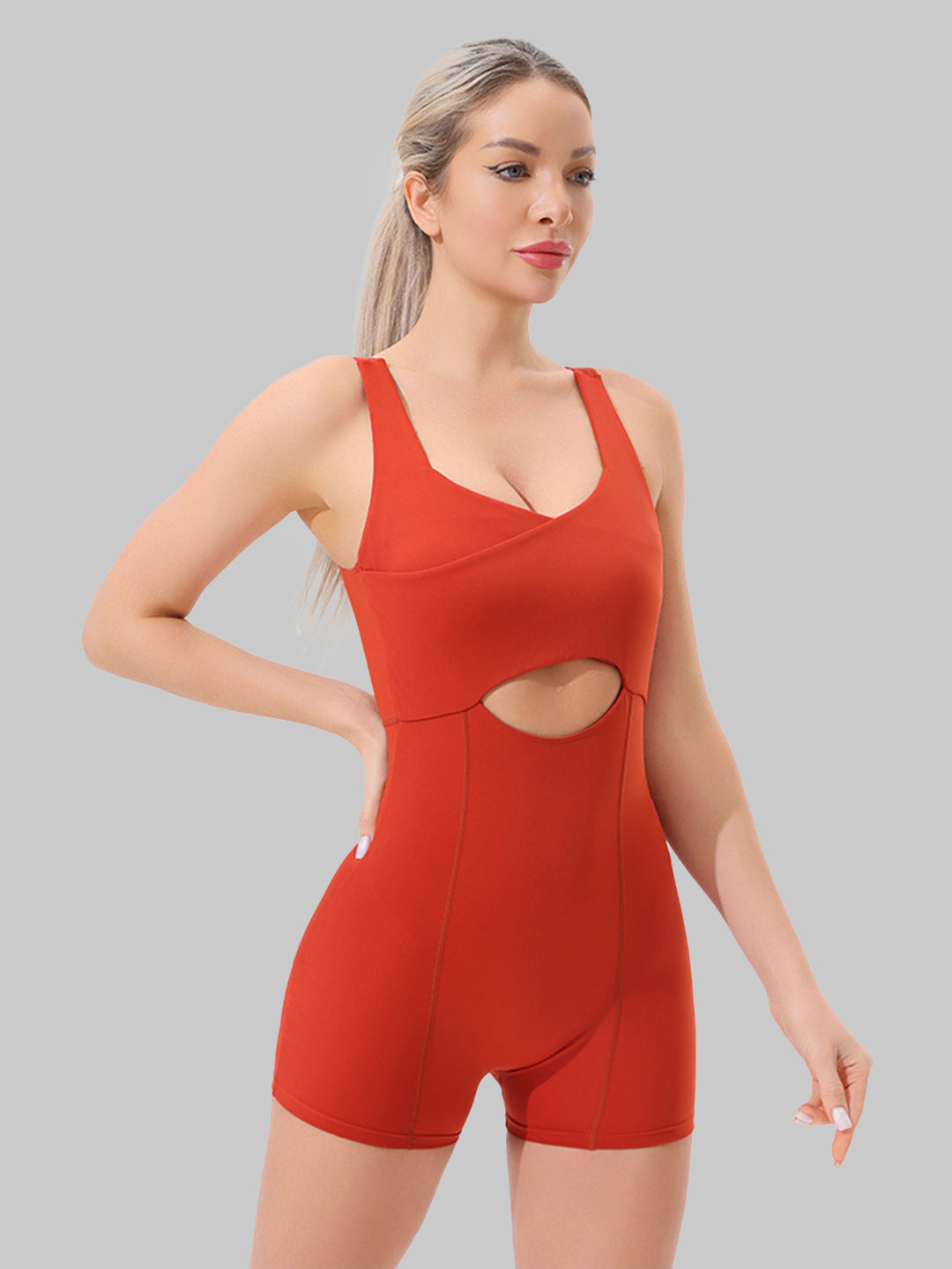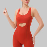 Bring the heat with the FierceFlex Cutout Romper – designed for the bold, confident, and unapologetically stylish. The vibrant fire-red hue makes a statement, while the edgy front cutout detail adds a daring twist to your gym-to-street look. With its figure-hugging silhouette and sleek lines, this romper flatters every curve while keeping you comfortable and mobile.