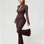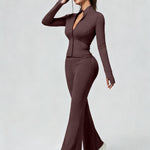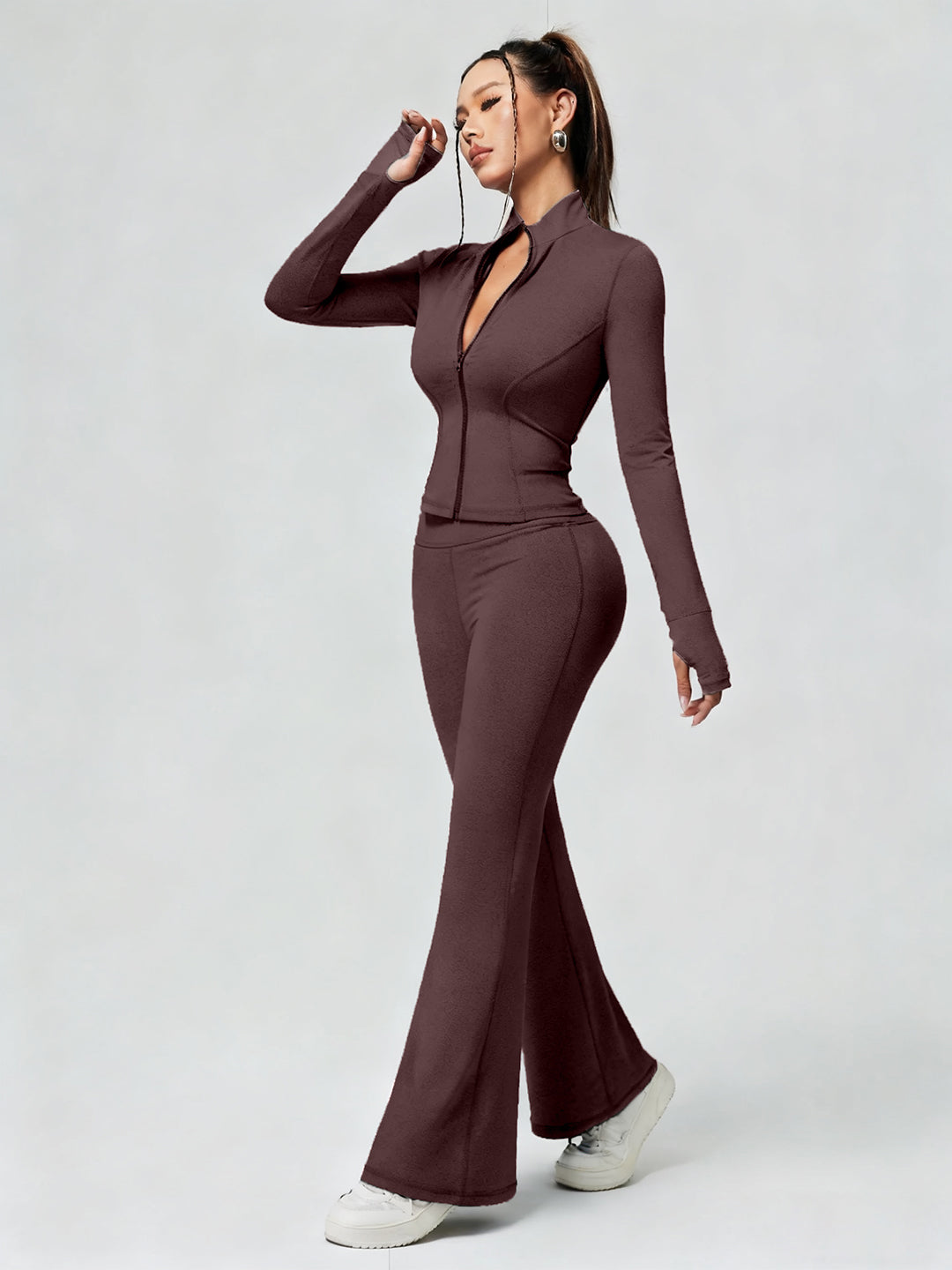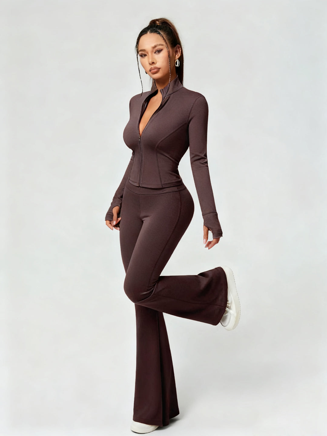 The FlexCurve Athletic Set is engineered to contour your curves while delivering high-performance comfort. Featuring a sleek zip-front top and ultra-flattering flare leggings, this set offers a second-skin fit, moisture-wicking fabric, and seamless mobility for every workout. Perfect for gym training, yoga, pilates, or everyday athleisure.