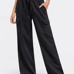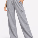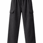 Featuring functional side cargo pockets and a comfortable elastic waistband with adjustable drawstring, this jogger blends relaxed styling with practical design. The straight, wide-leg silhouette flatters all body types while offering all-day ease.