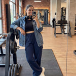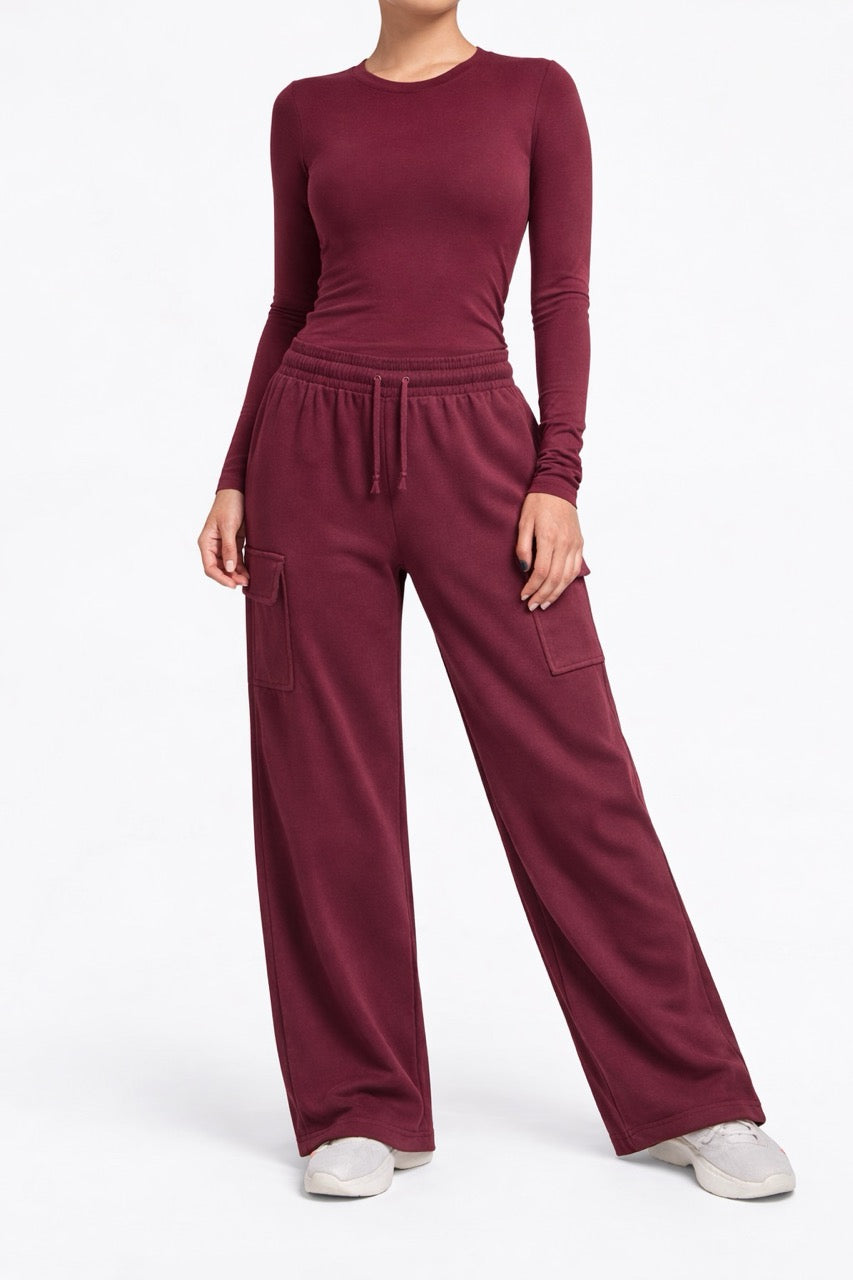 These wide-leg joggers are designed for movement, lounging, and everything in between—crafted in a soft, breathable fabric that drapes beautifully without losing structure.