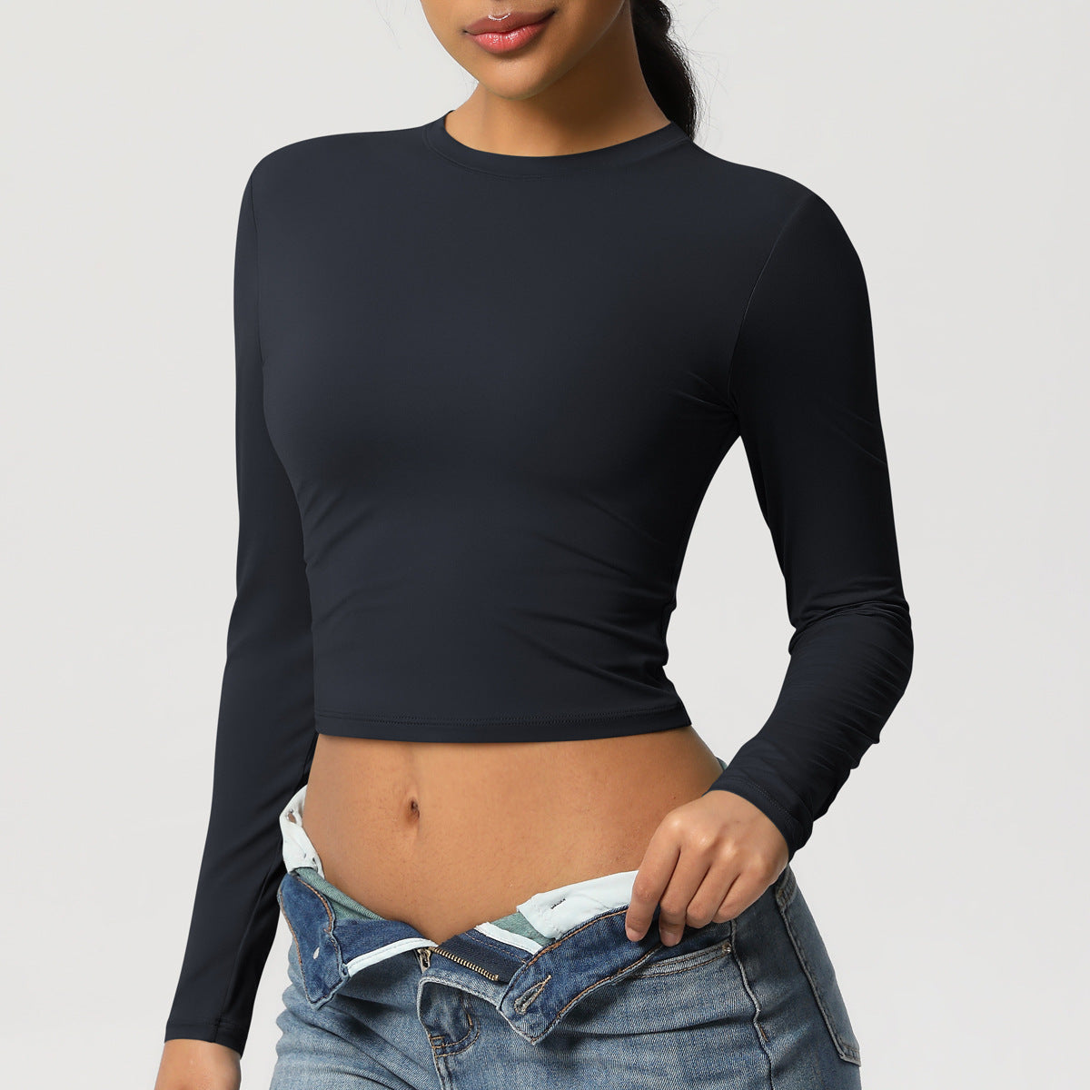 A sleek, body-contouring crop designed to flatter your shape. Crafted in ultra-smooth stretch fabric with a second-skin feel, it delivers all-day comfort with a polished, minimal look—perfect for workouts or elevated casual wear.